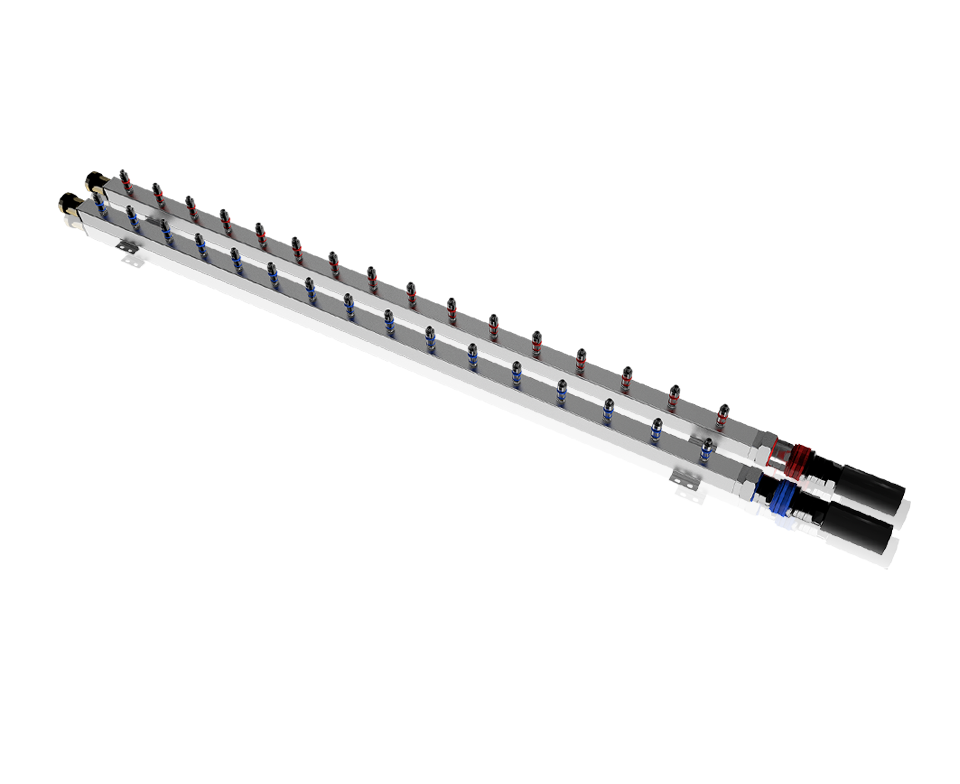 Manifold主要用于機柜內(nèi)各液冷設備之間的冷卻介質(zhì)分配,有耐腐蝕、強度高、易拓展等特點。根據(jù)使用需求,有單管和雙排管之分,單管主要用于手插連接,雙排管用于百插連接,雙排管之間為焊接連接,兩管路位置精度+0.15mm,屬于超精密制造。